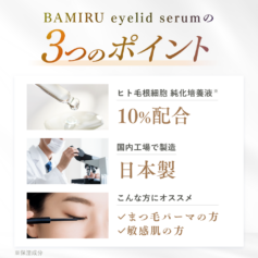 まつげの毛根から抽出した人毛根細胞純化培養液を世界初採用。まつげに輝きを与えます。